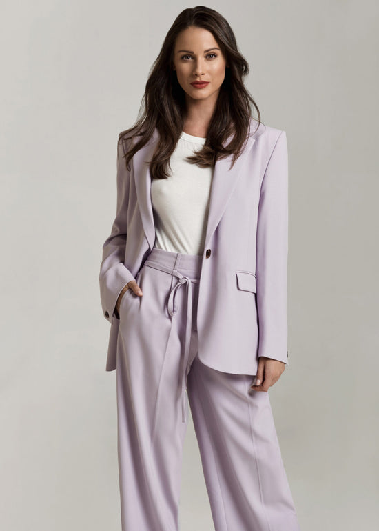 Az első egy klasszikus business look, amit a blézer és a hozzá illő nadrág ragyogó levendulalila színe tesz különlegessé. A formális öltözékeknél is érdemes finoman elrugaszkodni a megszokottól – ez esetben a hagyományos fekete, fehér, szürke és navy kosztümöktől -, ezzel is többet mutatva a személyiségedből.