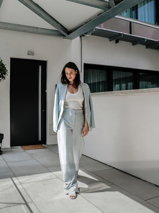 Blézer és nadrág: Max Mara / Top: Anine Bing / Papucs: Saint Laurent