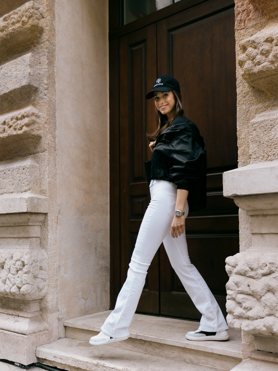 Dzseki: Prada / Baseball sapka: Anine Bing / Nadrág: Zara / Cipő: Louis Vuitton / Táska: Tom Ford